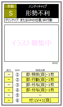 LV+1(自)![]() | 再判定![]() | 回復1回![]() | 属性変更(自)![]() | 強化-1枚![]() |
