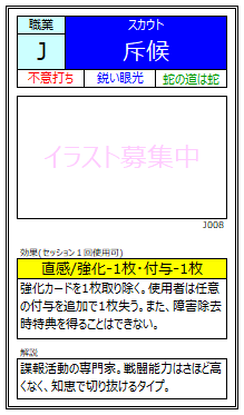 | 斥候 | 不意打ち![]() | 鋭い眼光![]() | 蛇の道は蛇![]() |
