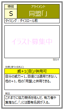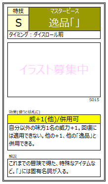 名声「」![]() | 同盟「」![]() | 逸品「」![]() |